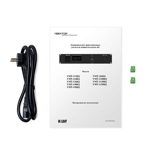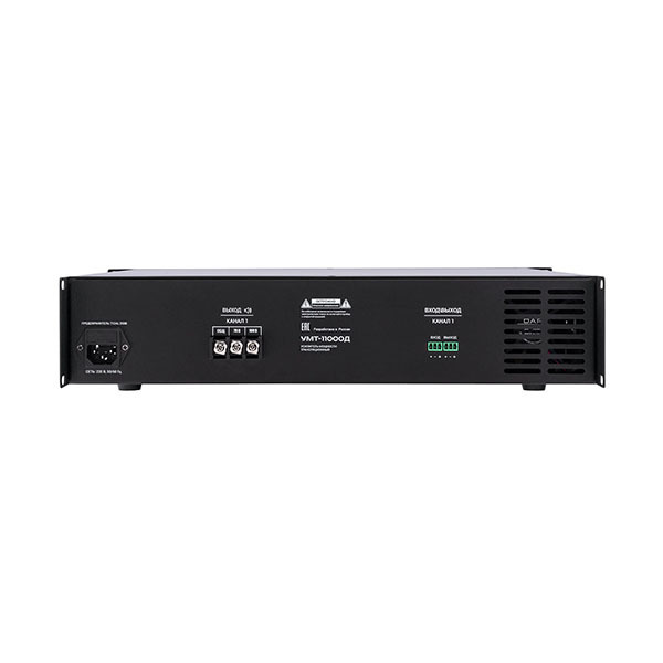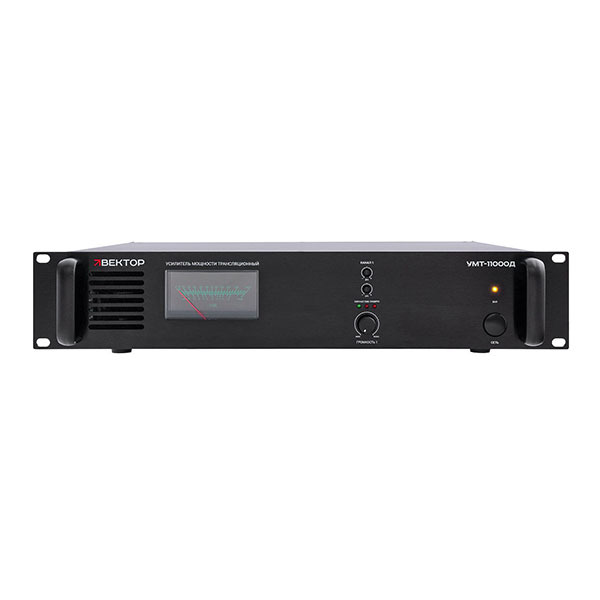 Трансляционный усилитель Вектор УМТ-11000Д — усилитель мощности класса D на 1000 Вт для систем музыкальной трансляции и аварийного оповещения. Выходы на громкоговорители 100 В и 70 В. Линейные входы/выходы на разъемах Phoenix. Индикация состояния, защита от замыкания и перегрузки. Удобное соединение нескольких усилителей в системе. Рэковое исполнение.