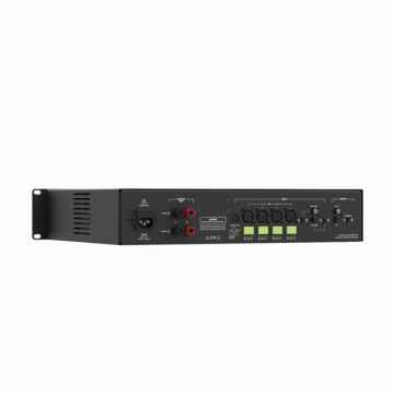 Трансляционный усилитель Moose TL200DT USB — многофункциональный трансляционный усилитель 200 Вт RMS. Входы: микрофон, линейный. Источники: SD, USB, Bluetooth, FM. Выходы 4Ω, 8Ω, 100В линия. Фантомное питание +48В. Размер 2U.