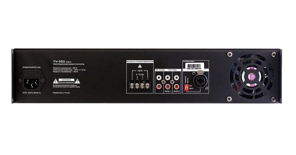 Трансляционный усилитель Вектор ТУ-350 — микшер-усилитель мощностью 350 Вт. 1 универсальный (мик/лин) и 2 линейных входа. Выход 100В или 4-16 Ом. Приоритет микрофона, фантомное питание, двухполосный эквалайзер. Для музыкально-речевой трансляции на небольших объектах.