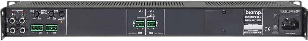 Усилитель мощности 2-х канальный BIAMP REVAMP2150 — 2-канальный цифровой усилитель класса D. 2 x 150 Вт (RMS) при 4 Ом, возможность мостового включения. Конвекционное охлаждение без вентиляторов, полная бесшумность. Компактный корпус 1U.