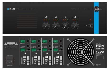 Трансляционный усилитель CVGaudio PT-4120 — четырехканальный усилитель мощности 4х120 Вт для многозонных систем трансляции. Поддержка 100V/70V/4-16 Ом. Четыре балансных входа и линкующих выхода Euroblock. Отдельный двухполосный эквалайзер на канал. Активное охлаждение, защита. Установка в стойку 3U.