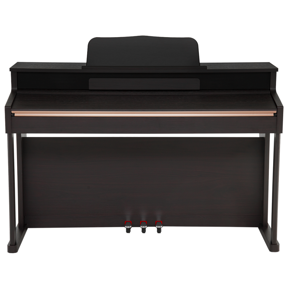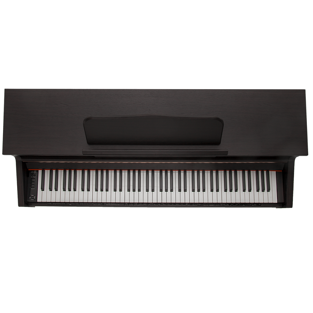 Классический деревянный корпус с задней стенкой и подставкой для нот позволяет звуку лучше резонировать. Виниловое покрытие маскирует стыки отдельных элементов. Минималистичный дизайн модели, правильно выбранный цвет и крепкий деревянный корпус гармонично впишутся в ваш интерьер. Стильный светящийся логотип не даст забыть об инструменте в плохо освещённом помещении. Клавиатура надёжно защищена удобно складывающейся крышкой.