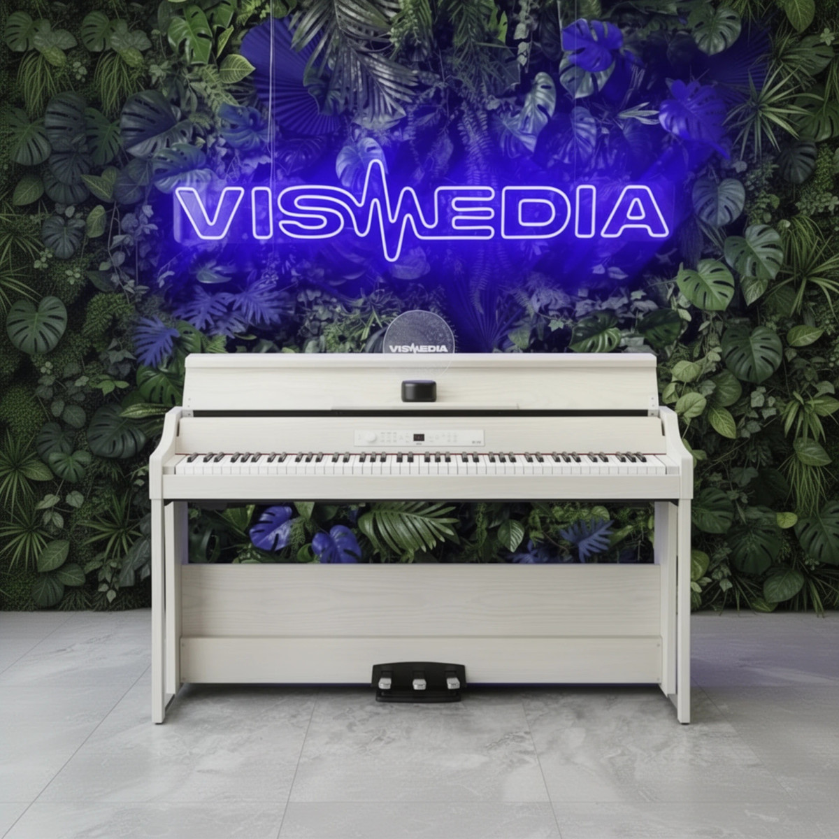 G1B AIR, флагманское цифровое пианино концертной серии KORG, теперь доступно в новом цвете «белый ясень», а также с приятной деревянной отделкой. Со вкусом подобранная текстура естественно сочетается с другой мебелью, освещая всю комнату, чтобы соответствовать прекрасному звучанию инструмента.