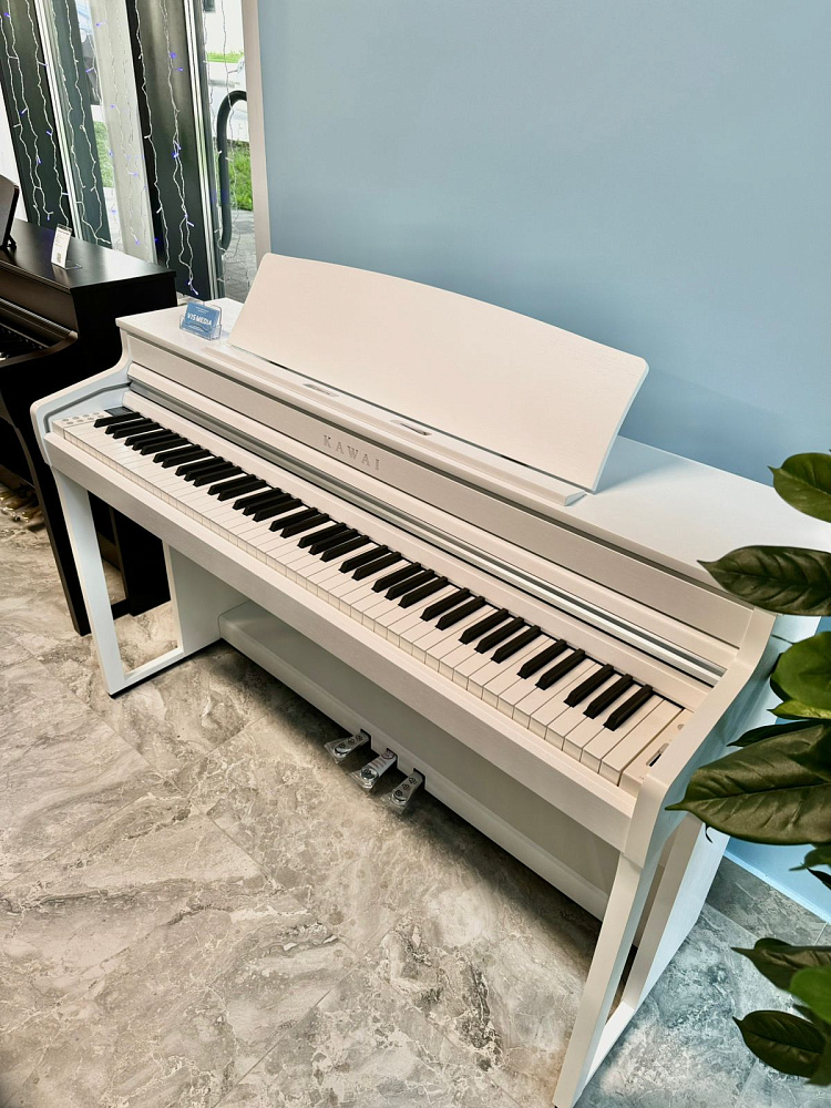 Цифровое пианино Kawai CA401 W — цифровое пианино для дома в элегантном белом корпусе. Клавиатура Grand Feel Compact с длинными деревянными клавишами и покрытием Ivory Touch, 192-нотная полифония. В основе — семплы концертных роялей Shigeru Kawai SK-EX. Функция баланса на низкой громкости, Spatial Headphone Sound, встроенные уроки и Bluetooth-подключение для работы с приложением PianoRemote.