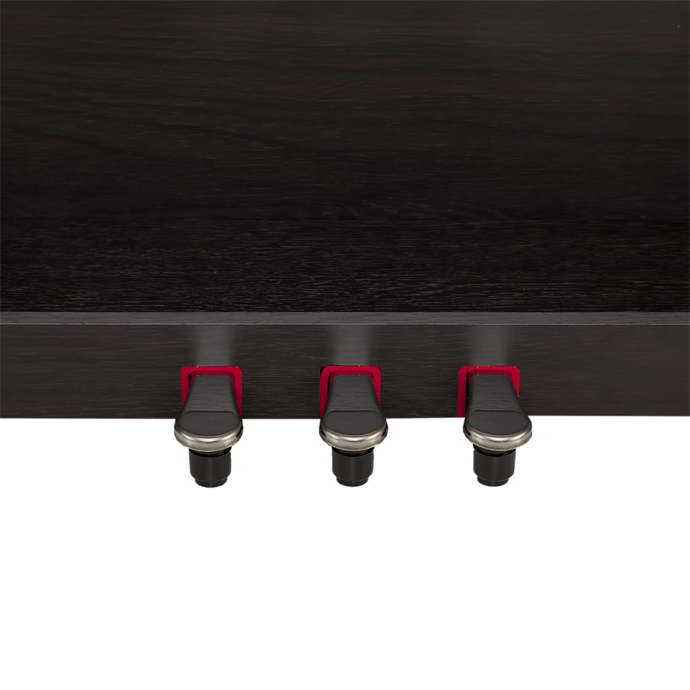 Стандартная трёхпедальная система отвечает за приглушение и задержку звука. Задержка может быть как полной, так и частичной. При полной задержке продолжают звучать все отпущенные клавиши. При частичной, только сыгранные до нажатия педали. Функция транспонирования повышает и понижает тональность на интервал от 1 до 11 полутонов. Встроенный метроном сделает вашу игру ритмичнее.