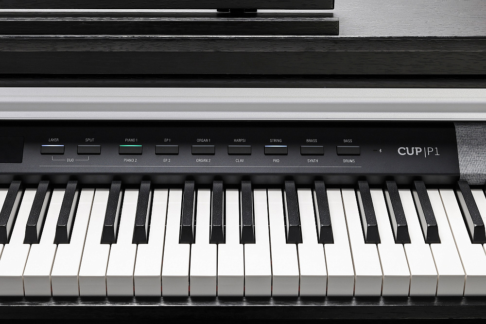 Пианино CUP P1 имеет интегрированную 4-х динамиковую стерео систему звука, усиленную двумя цифровыми усилителями мощностью 15 Вт каждый.