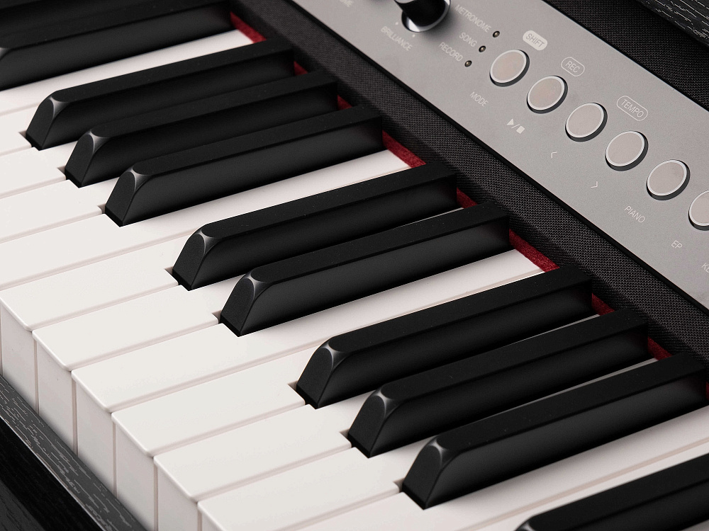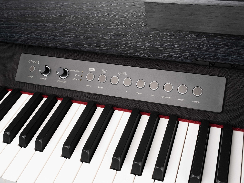 CP203 сочетает в себе весь опыт создания цифровых фортепиано Medeli в компактном корпусе, от флагманского звука немецкого рояля до 192-нотной полифонии, от совместимости с приложением PianoToolbox до всех параметров звука фортепиано, таких как шум молоточков или резонанс струн. Недавно разработанная компактная клавиатура с градуированным действием (GAC) предлагает полностью взвешенный молоточковый механизм в самом компактном размере. Кроме того, новый эксклюзивный звук японского рояля, тщательно записанные новые встроенные песни и новый педальный блок с поддержкой полудемпфирования — все это отражает эволюцию Medeli во всех направлениях.
