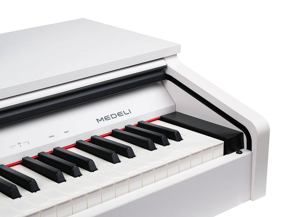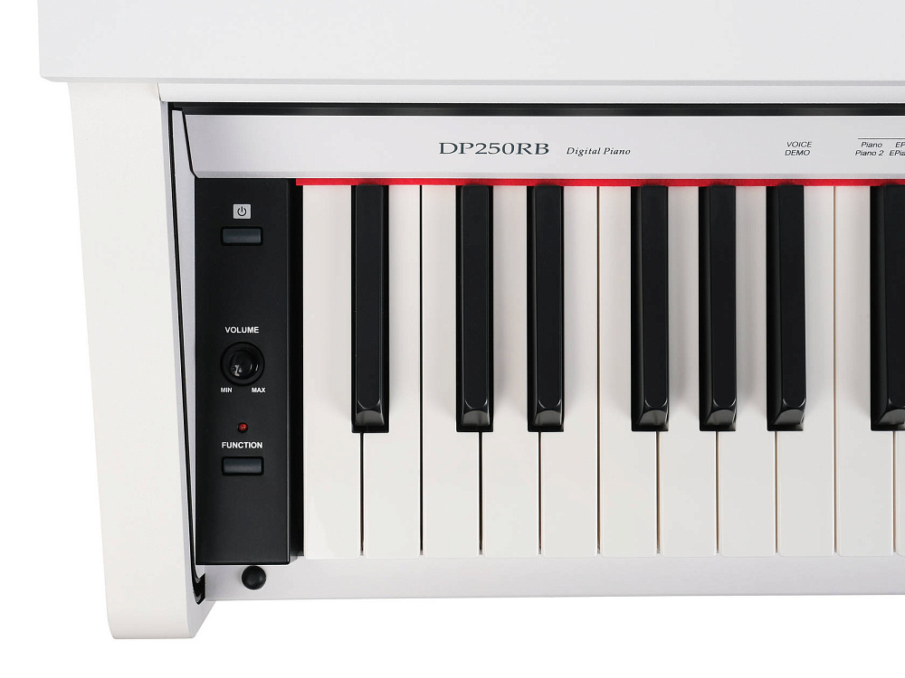 Цифровое пианино Medeli DP250RB-GW — цифровое пианино в глянцевом белом корпусе. 64-нотная полифония, 26 тембров. Клавиатура с молоточковой механикой. Два выхода на наушники. Элегантный инструмент для интерьера и ежедневных занятий.