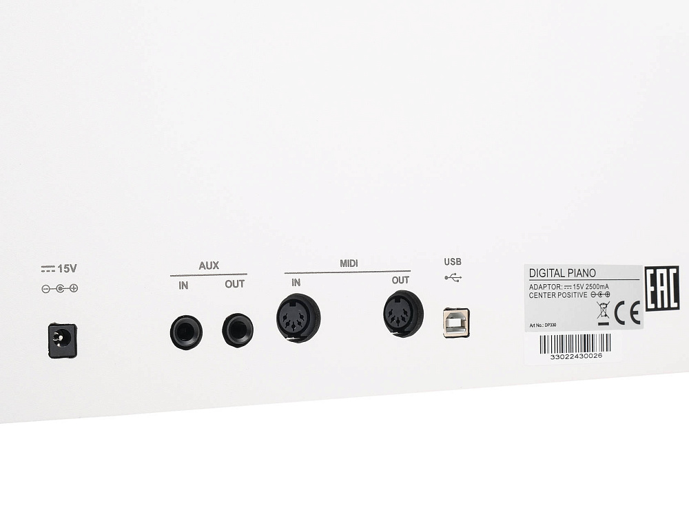 | Подключение | 1 x USB-B (MIDI), MIDI in / out, разъем для наушников (2 x 1/4"), входной разъем (1 x 1/4"), выходной разъем (1 x 1/4"), педаль (сустейн / смягчение / состенуто). |