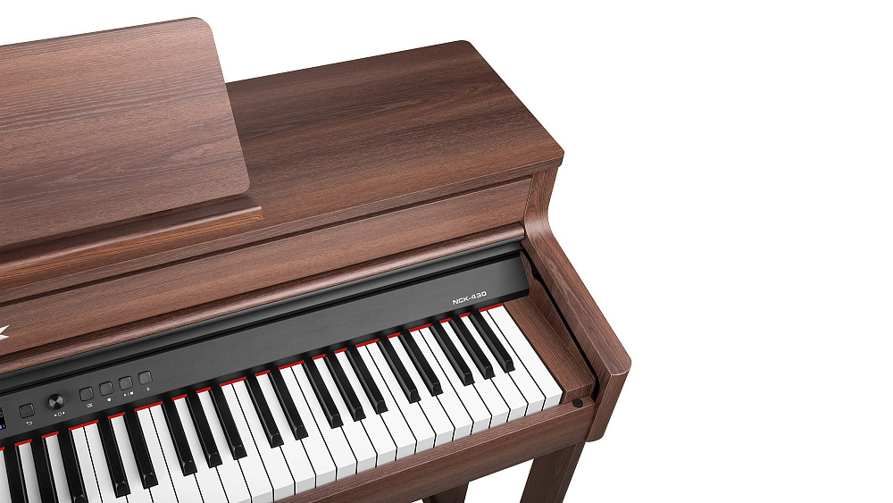 NCK-430 создано для музыкантов, желающих получить естественное звучание фортепиано в современном инструменте. Его 18-слойный сэмплированный фортепианный тембр передает выразительность от самого тихого пианиссимо до самого сильного фортиссимо. Двухканальная система с четырьмя динамиками воспроизводит резонанс струн и отклик педалей с высокой четкостью, создавая ощущение настоящего концертного фортепиано дома или в студии.
