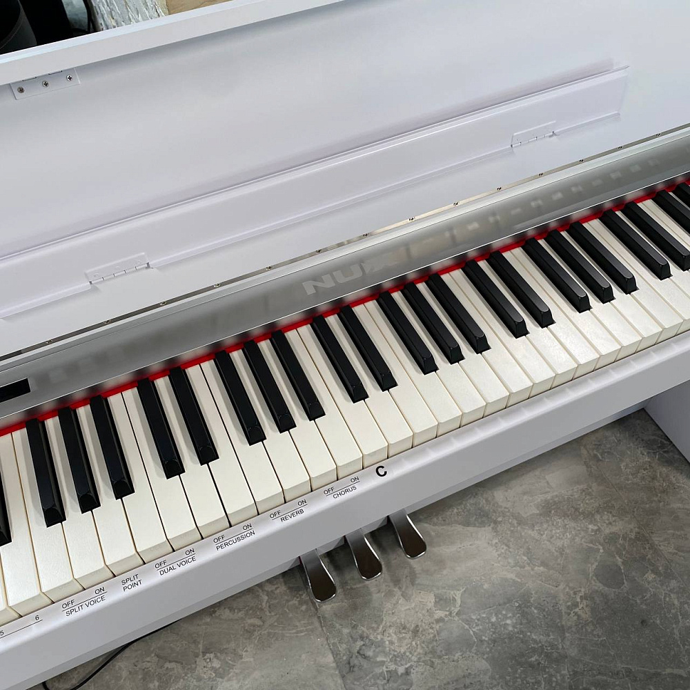 Цифровое пианино NUX WK-310-White — цифровое пианино на стойке. 88 взвешенных молоточковых клавиш (Graded Hammer Action), полифония 189 голосов, 128 тембров. 52 демо-песни, режимы Dual и Split. 3 педали, матовый белый корпус.