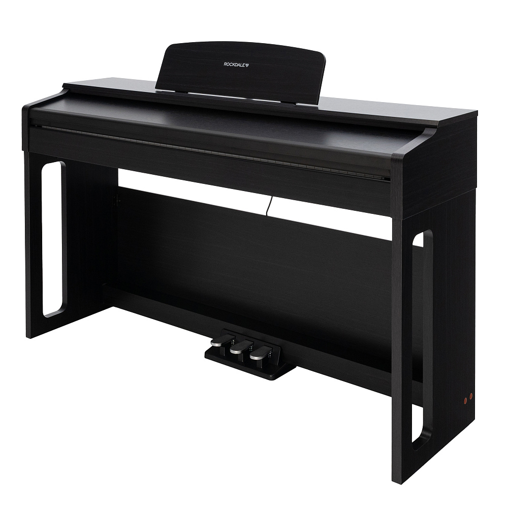 Цифровое пианино ROCKDALE Sonata Black — корпусное цифровое пианино с 88 градуированными молоточковыми клавишами. Деревянный корпус, блок из 3 педалей, 20 тембров, 64-нотная полифония. Функция разделения клавиатуры и два выхода на наушники. Классический дизайн для дома.