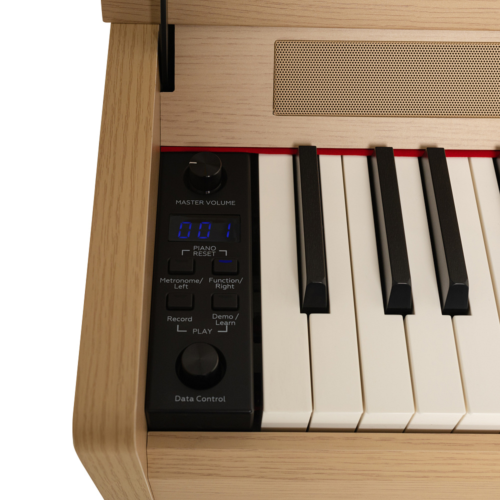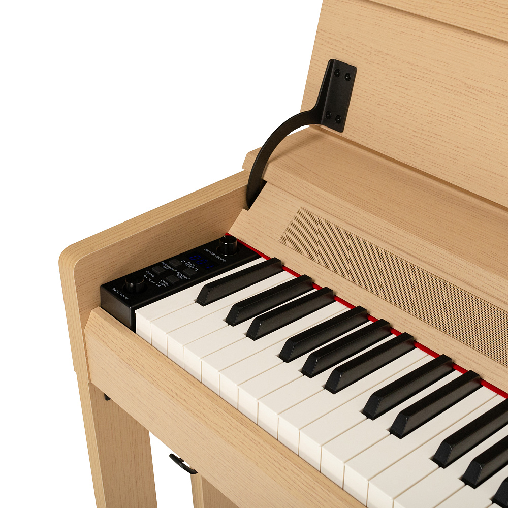 Цифровое пианино ROCKDALE Virtuoso Oak — корпусное цифровое пианино в цвете светлый дуб. 88 градуированных молоточковых клавиш, 128-нотная полифония, 30 тембров, блок из 3 педалей. Функция записи, LED-дисплей, USB-MIDI. Стильный инструмент с современным звучанием.