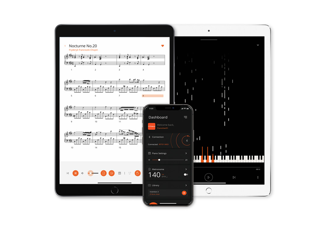 Зажигайте творческие способности и оттачивайте мастерство с помощью расширенных функций, доступных только в цифровом пианино Roland. Получайте доступ к цифровым партитурам, играйте любимые мелодии и углубляйтесь в настройки, сопрягая пианино с приложением Roland Piano App и другими музыкальными приложениями через Bluetooth. Играйте дуэты в одном диапазоне в режиме Twin Piano, записывайте свою игру, чтобы оценить прогресс, следите за временем с помощью встроенного метронома и многое другое.