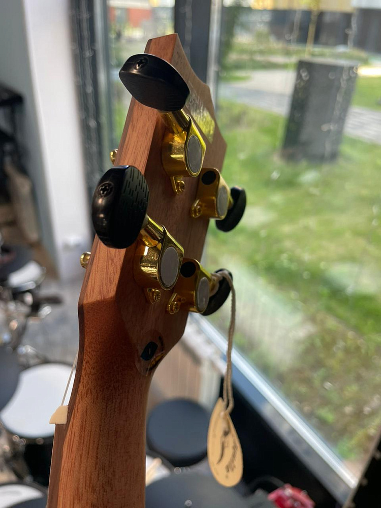 Укулеле DUC 450 MANGO выделяется роскошными маркерами грифа, стильно перекликающимися с инкрустацией на голове грифа. Костяной порожек, бридж из ореха и позолоченные колки с черными бутонами показывают самый серьезный подход к тому, чтобы создать инструмент одинаково прекрасный внешне, по звучанию, удобству игры и надежности.