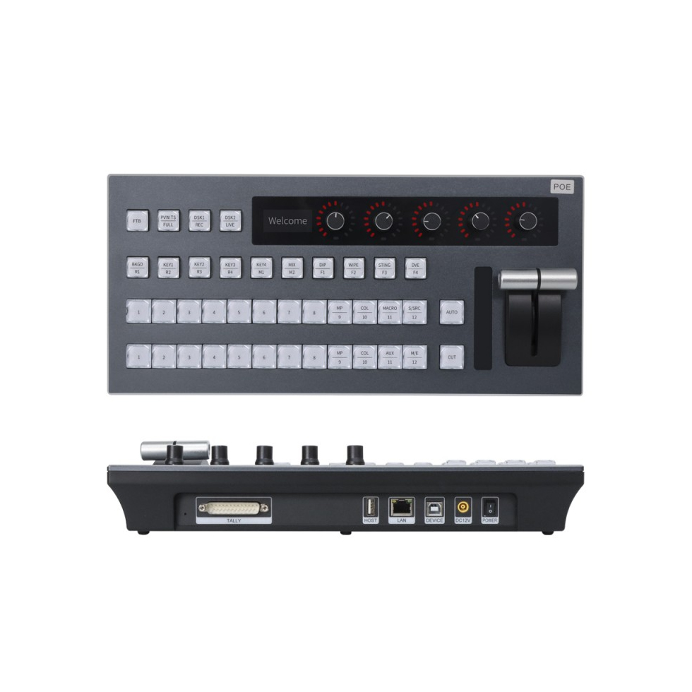 Панель управления обеспечивает мгновенный доступ и переключение в режиме реального времени для до 12 каналов ввода видеосигнала (как для программы (PGM), так и для предпросмотра (PVW)). Такая конфигурация идеально подходит для многокамерных съёмок концертов, конференций, спортивных мероприятий и новостных студий. Наличие светодиодных индикаторов на кнопках PGM/PVW, которые меняют цвет (например, красный для эфира, зелёный для предпросмотра), предоставляет оператору понятную и мгновенную обратную связь, исключая риск ошибок при переключении.