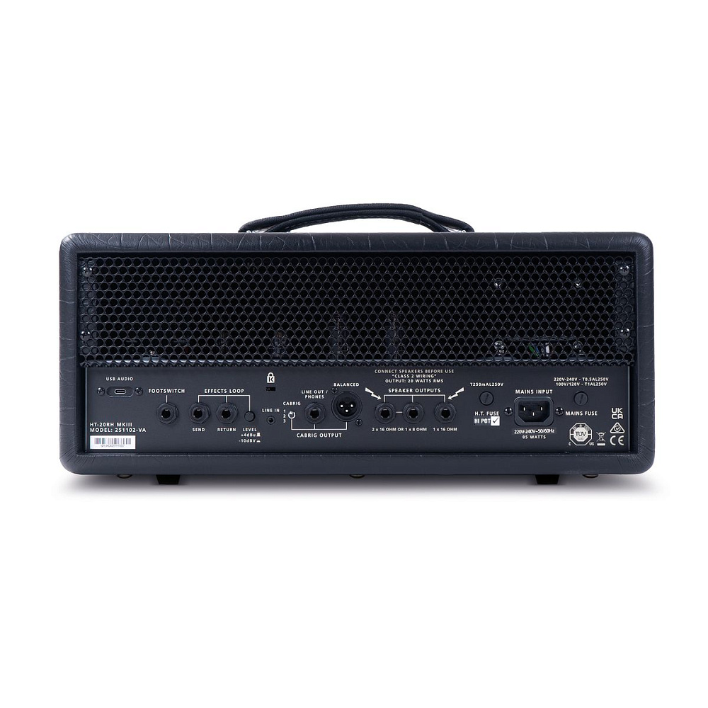 Усилитель гитарный Blackstar HT-20RH MK III — ламповая «голова» 20Вт. Оптимальный баланс мощности для дома и сцены. 2 канала по 2 режима, понижение мощности до 2Вт (10%). Технологии Cabrig и ISF. USB, XLR и стереовыходы для записи. Ножное переключение режимов.