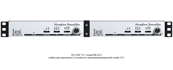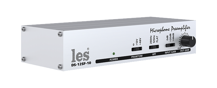 DS-12SF-10 имеет плавную регулировку коэффициента передачи и встроенный источник фантомного питания для конденсаторных и электретных микрофонов.