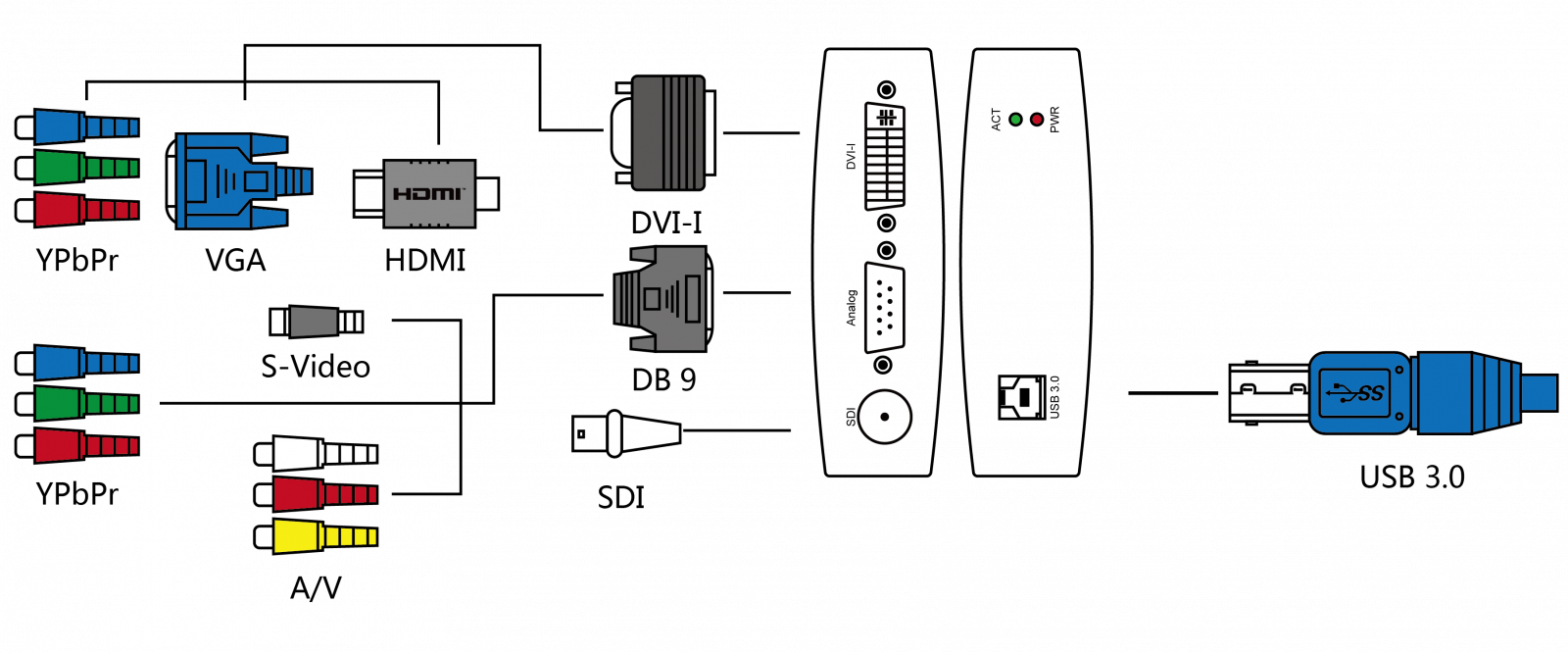 Устройство захвата Magewell USB Capture AIO — USB 3.0 устройство захвата «все-в-одном». Захват HDMI, DVI или аналогового (через DB9) видео до 2048×2160. Восьмибитный процессинг. Соответствие стандартам UVC/UAC — установка без драйверов. Совместимость с Windows, Linux, Mac, Chrome OS. В комплекте утилиты захвата. Универсальный инструмент для презентаций, конференций, записи.