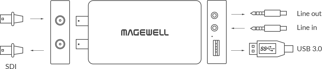 Устройство захвата сигнала Magewell USB Capture SDI Plus — USB 3.0 устройство захвата SDI с аудиоразъемами. Захват SD/HD/3G/2K-SDI до 2048×1080. Сквозной SDI выход. Аудио вход для микрофона и выход на наушники. Восьмибитный процессинг. UVC/UAC совместимость. Совместимость с Windows, Linux, Mac, Chrome OS. Полнофункциональный захват SDI с контролем аудио.