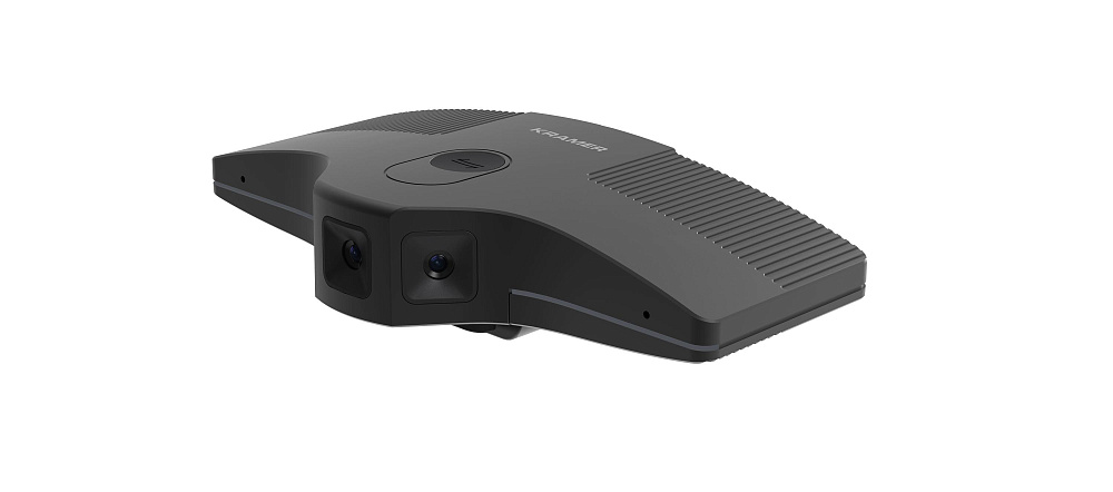 Видеокамера Kramer K-180Mini — интеллектуальная панорамная камера 4K с обзором 180°. Три объектива, фиксированный фокус. Автоматическое кадрирование (Auto Framing) и сопровождение говорящего. Подключение по USB-C. Для huddle-комнат.
