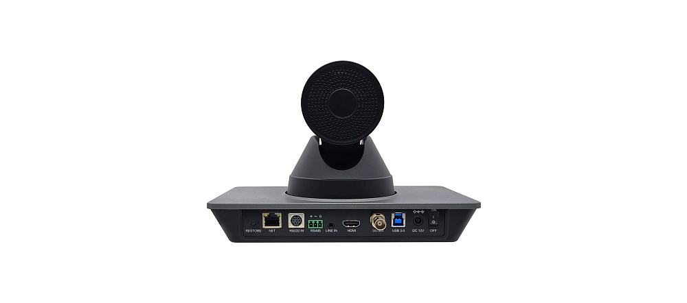 | Порты | RJ-45 — порт Ethernet 10/100/1000 Мбит/с, RS-232 IN (8-конт. разъём mini-DIN), макс. расстояние 30 м, протоколы VISCA/Pelco-D/Pelco-P, RS-232 OUT (8-конт. разъём mini-DIN), макс. расстояние 30 м, протоколы VISCA/Pelco-D/Pelco-P, RS-485 (2-конт. блок съёмных клемм), макс. расстояние 1200 м, протоколы VISCA/Pelco-D/Pelco-P, USB-3.0 (разъём USB-В) — вывод видео с разрешением до 4K/30 и 1080P, Вход аудио Line In (mini-jack 3,5 мм); HDMI |