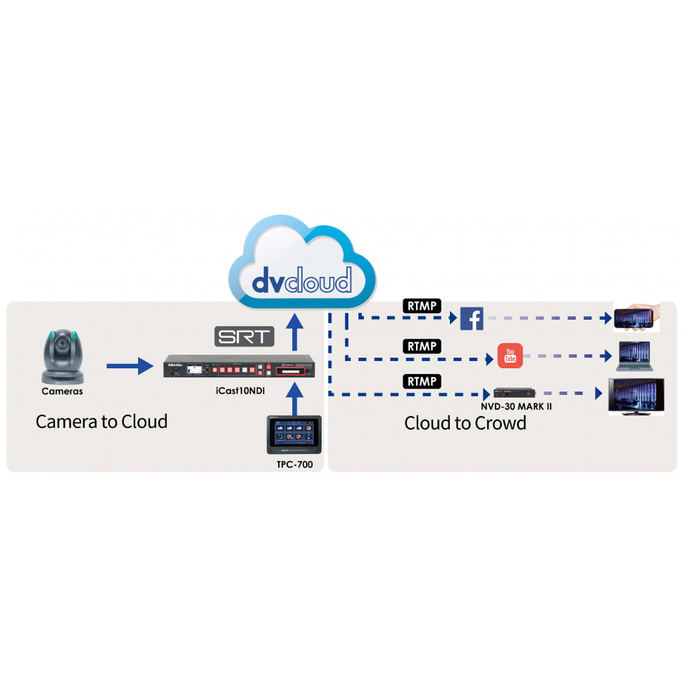 Datavideo iCast 10NDI — это инновационное оборудование для производства прямых трансляций, объединяющее в одном корпусе функции видеокоммутатора, PTZ-контроллера и потокового энкодера. Устройство разработано для создания профессиональных гибридных мероприятий, лекций, конференций и онлайн-трансляций, предоставляя «всё необходимое» для производства прямых эфиров без использования сложного оборудования. iCast 10NDI значительно упрощает рабочий процесс, предлагая единый интерфейс для управления видеопереключением, записью и стримингом, что делает его незаменимым для различных сценариев — от учебных заведений до корпоративных мероприятий.