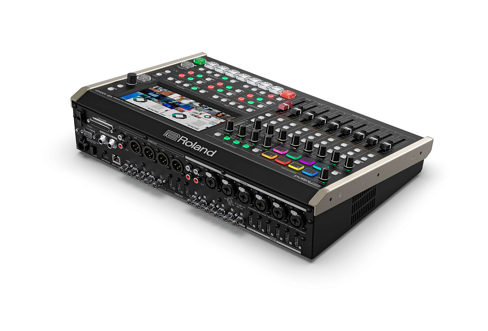 Видеомикшер Roland VR-120HD — портативный гибридный AV-микшер для мероприятий. 6 входов 3G-SDI, 6 входов HDMI, встроенные потоковые кодеры, 42-канальный аудиомикшер. Управление PTZ-камерами, запись на SDXC — для производства среднего уровня.