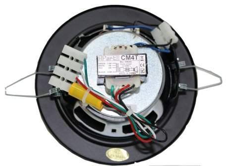 Встраиваемая акустика APart CM4T — широкополосный потолочный громкоговоритель 4" (двухконусный). Белый цвет. Универсальное подключение: 100В и 16 Ом. Качественное звучание речи и музыки. Для фонового озвучивания жилых и коммерческих помещений с ограниченным бюджетом.