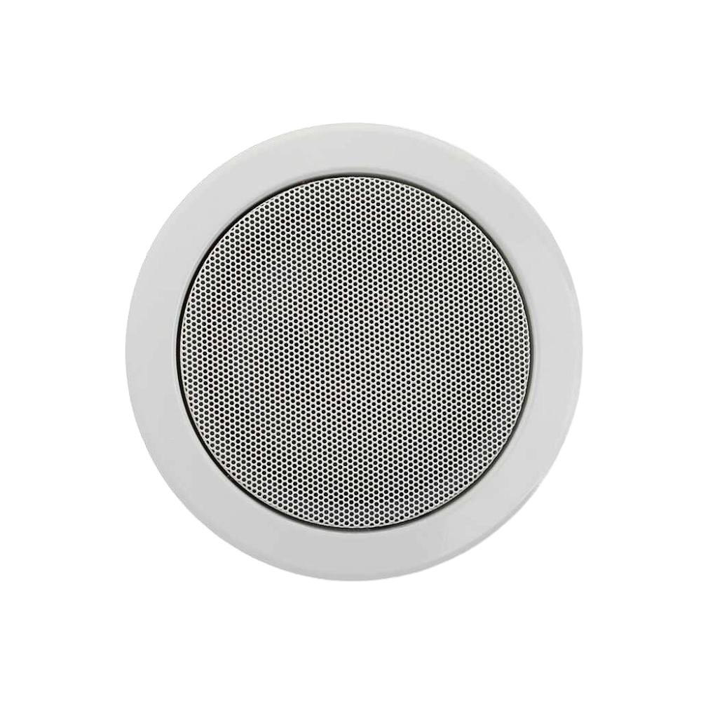 EN-CM6T6 — это 6,5-дюймовый встраиваемый потолочный динамик из стали с порошковым покрытием (эквивалент RAL 9010), оснащённый высокоэффективным динамиком полного диапазона и многополюсным трансформатором на 100 вольт, сертифицированным в соответствии со стандартом EN54-24. Устройство оснащено керамическим разъёмом для подключения динамика, термопредохранителем и металлическим противопожарным куполом.