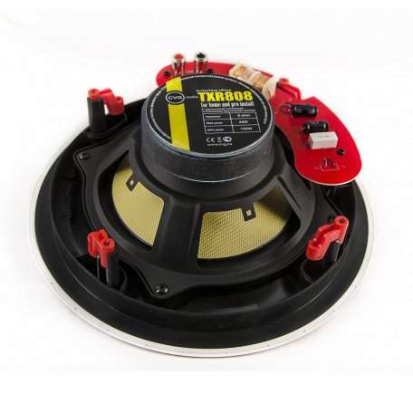 CVGaudio TXR808 – двухполосные встраиваемые в потолок или стены акустические системы для Hi-Fi звуковых систем, мультирум систем и домашних кинотеатров. Также акустические системы серии TXR могут использоваться в низкоомных (low-impedance) системах фонового звука, установленных в кафе, ресторанах, бутиках и так далее. Импеданс акустических систем серии TXR – 8ohm. Мощность – максимальная 120W, RMS – 45W. CVGaudio TXR808 – двухполосная акустическая система. Твитер (высокочастотный динамик) размером 1” (25.4mm) изготовлен из титана. За счет этого имеет очень хорошо читаемое и яркое звучание, актуальное для фронтальных и тыловых динамиков в домашнем кинотеатре. Вуфер (низкочастотный динамик) размеров 8” (203.2mm) изготовлен из желтого кевлара, имеет очень эффектный внешний вид и качественное, упругое звучание на низких частотах. Для деления высоких и низких частот в акустической системе используется специально рассчитанный пассивный кроссовер второго порядка. CVGaudio TXR808 имеют очень элегантный, современный внешний вид. Твитер фиксируется на специальном пластиковом выносе, что позволяет сохранить целостность плоскости вуфера и как следствие ровность его частотной характеристики. Лицевая металлическая сетка закрывающая диффузор имеет миниатюрную и очень элегантную рамку размером всего 4mm. Сетка закрывает всю внешнюю часть корпуса акустической системы. Благодаря этому динамик незаметно впишется в любой интерьер не нарушив общего стиля помещения. Также в каталоге CVGaudio есть опциональные квадратные сетки для этой модели. Они более гармонично смотрятся при монтаже TXR808 в стены, например при использовании как фронтальные или тыловые динамики в системах домашнего кинотеатра. Монтируется и демонтируется декоративная сетка очень легко – фиксация на магнитах. В подвесном потолке TXR808 держится с помощью четырех поворотных пластиковых кронштейнов. Они надежно фиксируют акустическую систему прижимая ее с обратной стороны к подвесному потолку. Приходящие от усилителя спикерные (акустические) кабеля фиксируются с помощью специальных металлических самозажимных клеммных терминалов. Отверстие в терминале позволяет надежно фиксировать любой кабель сечением до 4,5mm. Для разметки отверстия в потолке или стене для акустической системы TXR808 имеется специальный картонный шаблон. Диаметр посадочного отверстия – 252mm. Также в комплект к каждому динамику вложены перчатки, чтобы Вы при установке динамика случайно не испачкали белый потолок руками. Качественные комплектующие и отличное качество сборки гарантируют долгую и безупречную работу акустических систем CVGaudio TXR808.