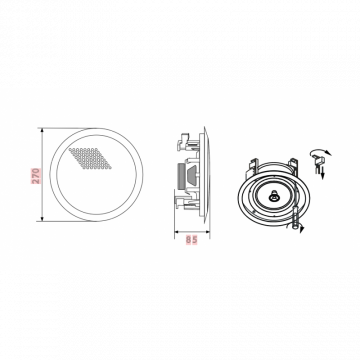 Потолочная АС · Низкопрофильная · 8″ · 6 Вт · 70/100 В · 95 дБ SPL · 50–18000 Гц · 195°