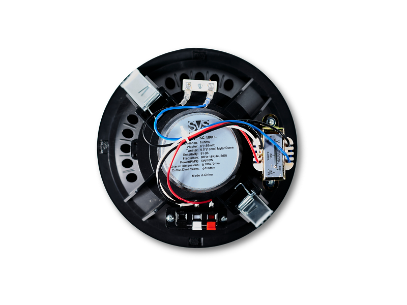 Встраиваемая акустика SVS Audiotechnik SC-106FL Black — безрамочный потолочный громкоговоритель 6" с закрытым корпусом. Мощность 5/10 Вт (70/100В), 8 Ом, чувствительность 91 дБ. Частотный диапазон 90-16000 Гц, монтажное отверстие 166 мм. Черный цвет, минималистичный дизайн.