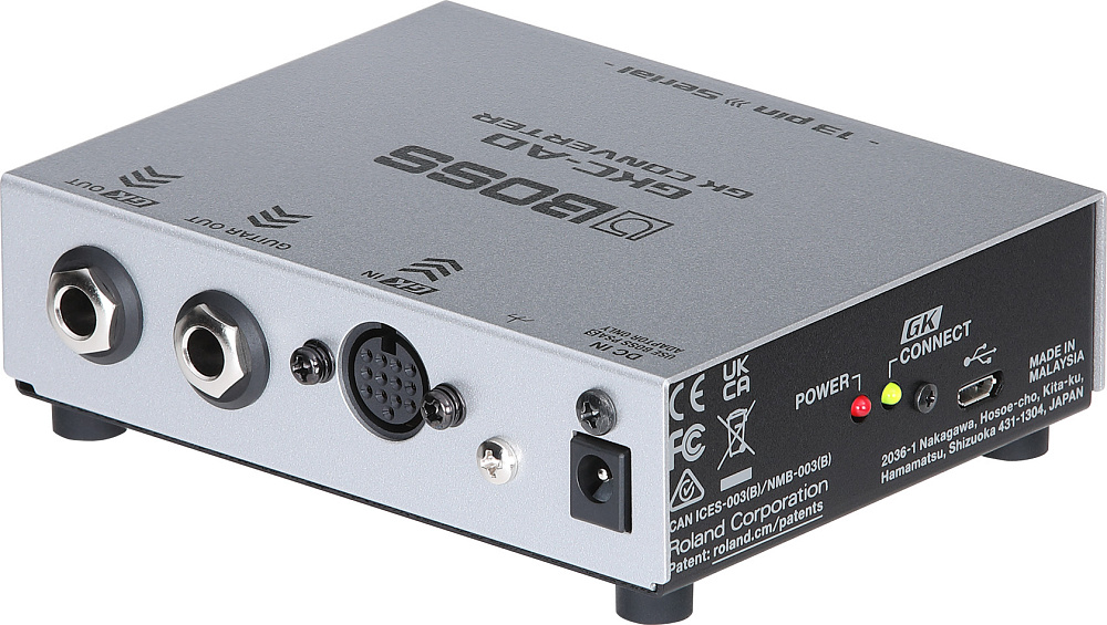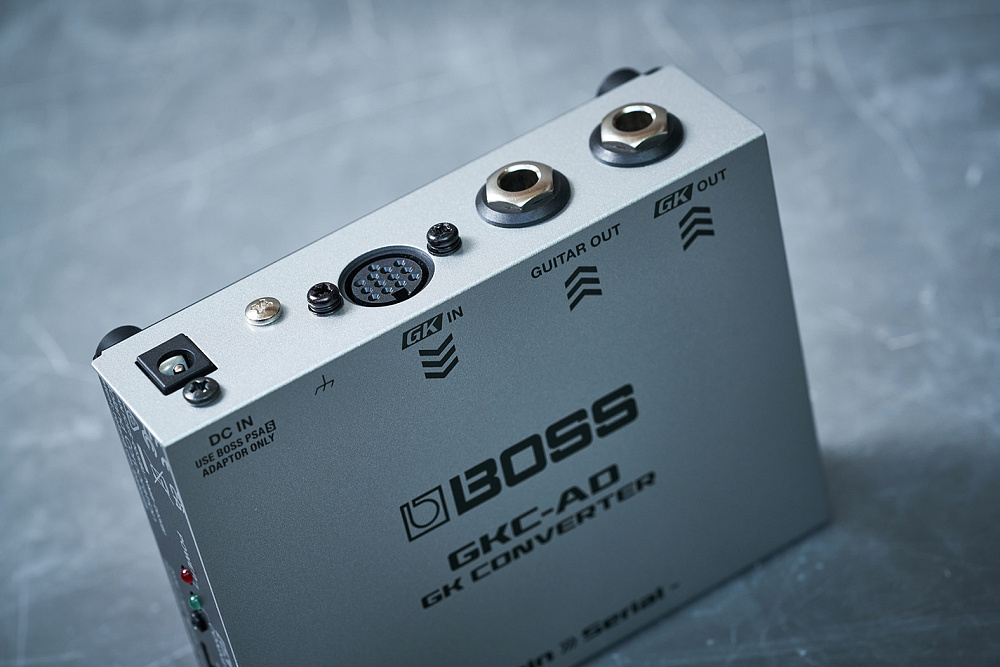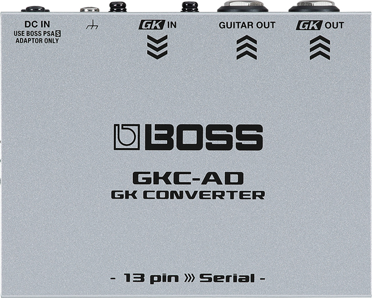 Новейшие синтезаторы BOSS и гитарные и басовые приборы V-Guitar оснащены цифровым интерфейсом Serial GK - новым способом подключения, который обеспечивает более высокие характеристики по сравнению с аналоговым 13-контактным интерфейсом GK, использовавшимся в предыдущих поколениях. GKC-AD GK Converter позволяет управлять входом Serial GK на поддерживаемом устройстве с раздельного звукоснимателя Roland GK-3 или GK-3B или инструмента, оснащенного 13-контактным выходом GK.