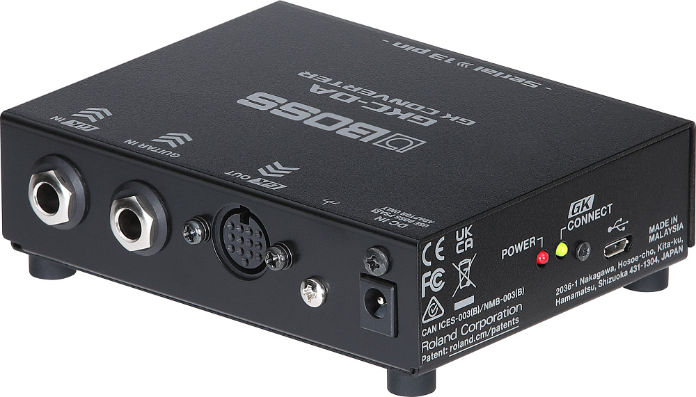 Конвертер Boss GKC-DA — преобразователь цифрового Serial GK в аналоговый 13-контактный GK. Для управления старыми устройствами (SY-1000, GP-10) с помощью новых звукоснимателей GK-5/GK-5B.