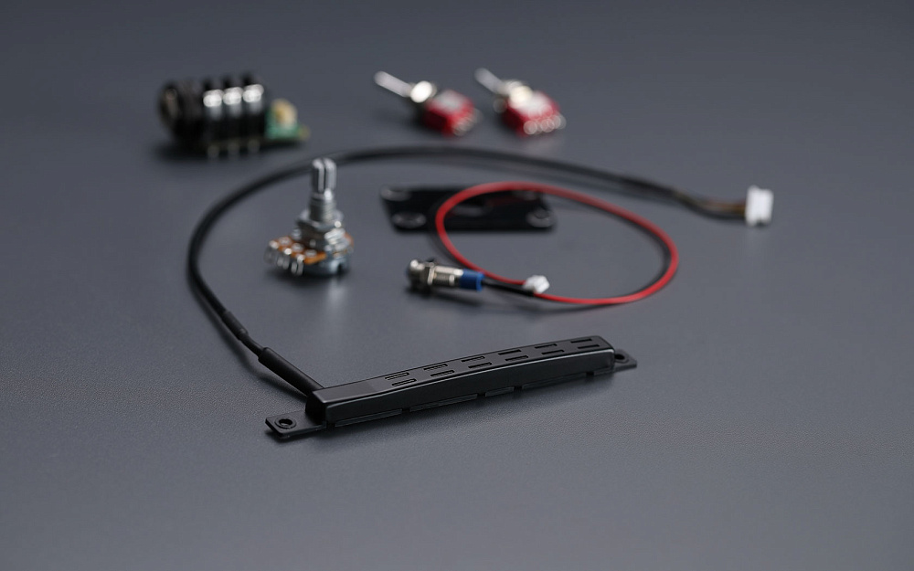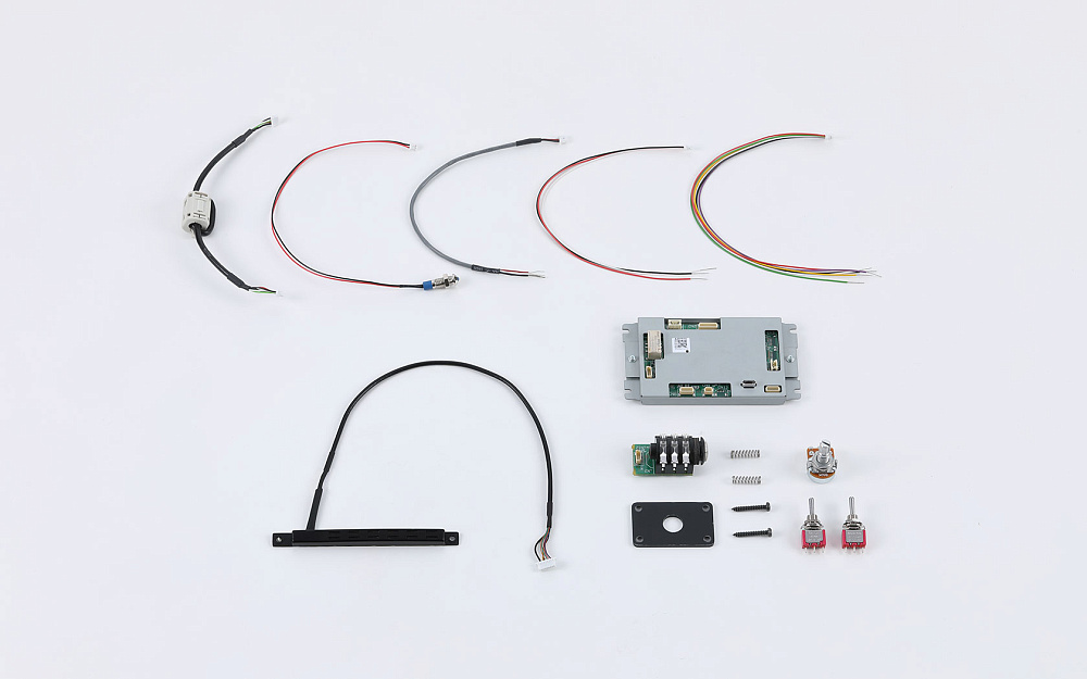 Комплект раздельных звукоснимателей GK5-KIT-G6 был разработан исключительно для шестиструнных электрогитар. Он содержит необходимые детали для полной профессиональной установки раздельного звукоснимателя BOSS GK-5 с расширенными элементами управления. Для удобства использования элементы управления могут быть расположены по усмотрению музыканта в процессе настройки. Детали включают в себя сам блок GK-5, печатную плату, плату/плату разъема Serial GK, регулятор уровня и переключатели, а также светодиод, провода, пружины и винты.