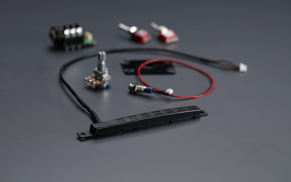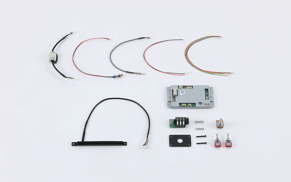 Комплект раздельных звукоснимателей GK5-KIT-G7 был разработан исключительно для семиструнных электрогитар. Он содержит необходимые детали для полной профессиональной установки раздельного звукоснимателя BOSS GK-5 с расширенными элементами управления. Для удобства использования элементы управления могут быть расположены по усмотрению музыканта в процессе настройки. Детали включают в себя сам блок GK-5, печатную плату, плату/плату разъема Serial GK, регулятор уровня и переключатели, а также светодиод, провода, пружины и винты.